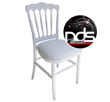 Location chaise Napoleon 3 blanche en polyethylène. La chaise Napoléon 3 est équipée d'une assise avec galette en simili cuir. La chaise Napoléon 3 blanche est LA chaise des réceptions classe et raffinée. Elle sera un atout charme pour tout vos événements. Son rendu est tout simplement sublime. Professionnels de la réception et de l'événement un vaste choix de chaises NAPOLEON. Chaises NAPOLEON en bois, en résine pour l'extérieur, en aluminium et même en polycarbonate transparent. Chaises en bois ou PVC, elles sont blanches, noires, rouge, dorées, argentées ou transparentes et peuvent avoir des galettes en cuir et tissus en blanc ou rouge. La chaise de style NIII reste un incontournable de la Fête, du banquet… Mais cette chaise traditionnellement en bois connaissait casse et travaux réguliers de peinture… La construction en résine en respectant les canons esthétiques du genre apporte la solution attendue de tous les gestionnaires de parcs. Quasiment incassable, Teintée dans la masse, Forme classique, Dossier plein, Solide et quasiment sans entretien, Empilable par 10, Galette vinyle blanc amovible fournie, cette chaise Napoléon III en résine blanche est la solution pratique pour une réception, un banquet, une garden-party, tout événement en extérieur mais encore en intérieur et toutes les manifestations nécessitant un mobilier modulaire et endurant. Le modèle existe aussi en chaise pliante sur charriot. Depuis 1997, cette chaise Napoléon III, empilable et en bois, est la référence des professionnels de l’événement et des loueurs. Et cela, à Paris comme à Londres ou Bruxelles et dans de nombreuses autres capitales. Le secret de cette chaise est dan sa légèreté. Elle facilite le travail de ceux qui la manipulent. Elle est moins vulnérable aux chocs répétés. À durée de vie est allongée. Sa légèreté est obtenue grâce à l'assise en un seul morceau de bois qui est cintré à la vapeur. Cette technique, délicate et exigeante, n'est maîtrisée que par de rares usines. La chaise Napoléon III, malgré toutes les prédictions des empêcheurs de s’asseoir en rond, reste un produit incontournable de la fête à la française. Or les professionnels déplorent trois difficultés d’exploitation : La nécessité de repeindre les chaises à intervalles réguliers, La non-compatibilité avec un usage en extérieur, La casse naturelle d’une chaise en bois. Une chaise Napoléon III en résine, qui sans prétendre rivaliser avec l’élégance du bois, va offrir une alternative très fonctionnelle. En résine blanche légèrement brillant, Solide, Empilable par 9, Quasiment sans entretien, Galette amovible, Teintée dans la masse, Cette chaise Napoléon III en résine blanche est la solution pratique pour une réception, un banquet, une garden-party, tout événement en extérieur mais encore en intérieur et toutes les manifestations nécessitant un mobilier modulaire et endurant.