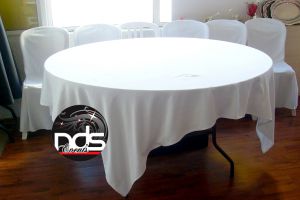 Nous proposons en location nappes rondes, rectangulaires et carrées, choisissez parmi nos coloris ! Location de chemins de table ! Ajoutez une touche colorée à votre décoration ! Nous vous proposons en location les serviettes, torchons et liteaux ! Découvrez notre gamme de Nappe polyester, anti-tâches, facile d'entretien, infroissable et waterproof. Nous vous proposons des modèles de Nappe rectangulaire et Nappe ronde blanche pour habiller vos évènements accompagner de nos tables de réceptions pliantes. Vous pourrez habiller vos tables avec les nappes ronde blanches en 290cm adaptable pour les tables en 150 et 180 cm mais également les nappes rectangulaires en 150 x 240 cm pour les tables en 183 X 76 cm, Notre offre contient également des nappes en Lycra blanc et Noir pour un rendu tendu et Design de vos tables. Ne se repassent pas, ne jaunissent pas. Nous disposons également de serviette en tissu coloris blanc, carrée en dimension 50 X 50 CM. Location de Nappe et Serviette blanche sur Lyon, Vienne, Valence, Saint etienne, Grenoble. Location de Nappe Carrée Blanche 240 x 240 cm pour table ronde de 180 et 150 cm, Nappe carrée matière polyesther - Facile à repasser, S'adapte parfaitement sur une table ronde les pointes de la nappe tombant sur chaque pied comme sur la photo, Permet aisement de mettre les pieds sous la table.  Location Nappe Rectangulaire Blanche 150 x 240 cm en matière polyesther S'adapte parfaitement aux tables rectangulaire 183 x 76 cm Idéal pour Mariage, Reception, Traiteurs - Facile à repasser. Location de Serviette Carrée 50 x 50 cm Blanche, Matière polyester anti tache - Belle finition. Parfaite pour toutes vos réceptions, nos serviettes s'accordent à merveille avec nos nappes carrés blanches et ronde. Découvrez l'ensemble de notre gamme de nappes et serviettes. Blanc ou coloré, votre nappe est un produit indispensable pour votre réception. Choisissez notre gamme coton blanc, notre gamme polyesther ou bien encore notre gamme non tissée, pratique et jetable. Toutes les informations sont indiquées sur nos fiches produits. vous propose une gamme complète de nappes blanches en coton qui s'adapte à l'ensemble des tables standards : rondes, carrées ou encore ovales. Pour chaque table, vous trouverez une dimension adaptée.